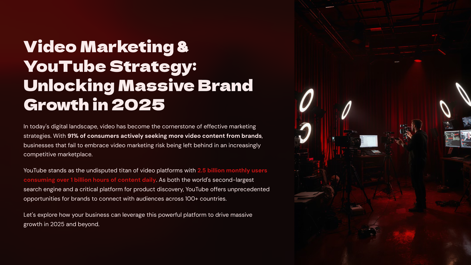 Video is no longer a ânice to haveââitâs a non-negotiable part of a winning digital marketing strategy. Consumers today prefer to watch, not readâespecially when learning, being entertained, or making buying decisions. Studies show that video content generates 1,200% more shares than text and images combined, and that 89% of marketers report video delivers a strong ROI. Whether itâs a short Instagram reel or a long-form YouTube tutorial, video allows brands to connect on a human level, build trust, and demonstrate value.