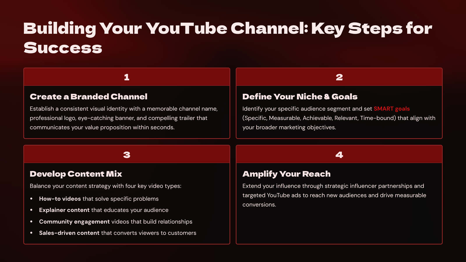 YouTube is the second-largest search engine in the world after Google and a high-trust platform for long-term brand building. Setting up a professional YouTube channel starts with choosing the right channel name (usually your business name), uploading a clear profile photo or logo, and designing an eye-catching channel banner that communicates what your channel offers. Add a compelling channel description using relevant keywords that explain your niche, who you help, and what viewers can expect. Set up channel sections to categorise your videos into playlists, making it easier for users to browse. Create a custom intro and outro for brand consistency. Use the âAboutâ tab to add links to your website, lead magnet, or social media. YouTube rewards watch time, engagement, and keyword optimisationâso publishing consistently and encouraging likes, comments, and subscriptions is vital. Make use of YouTube Studio to upload, schedule, edit, and track your videos. Pin comments, reply to viewers, and use community posts to keep your channel active. A well-optimised YouTube channel acts as a 24/7 authority builder, especially if your videos continue to rank and deliver traffic over time.