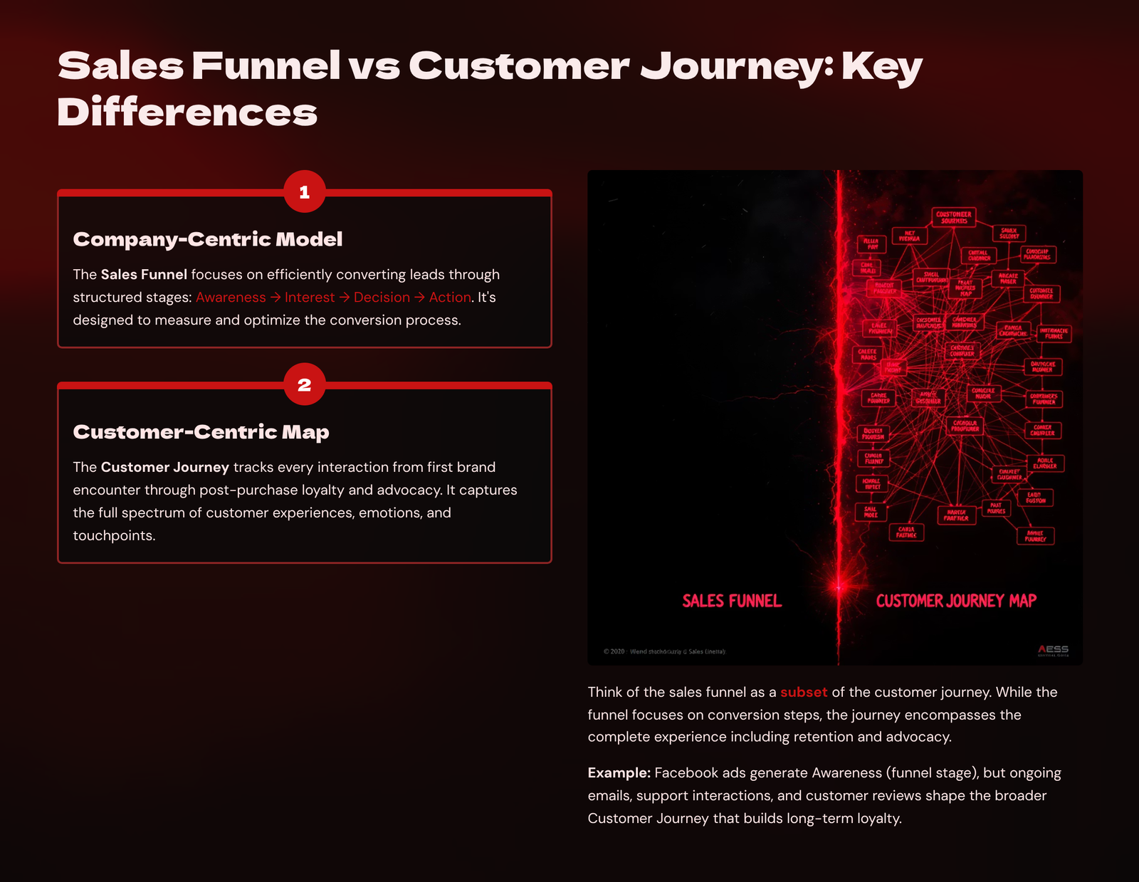 Customer journey mapping is the process of visually outlining how a person becomes a customer—and then a repeat buyer or brand advocate. It includes every touchpoint, channel, emotion, and question they encounter from first contact to post-purchase. The typical journey follows five stages: Awareness (I have a problem), Consideration (what are my options?), Decision (why you?), Purchase (let’s go), and Retention/Advocacy (I’m happy, I’ll refer others).