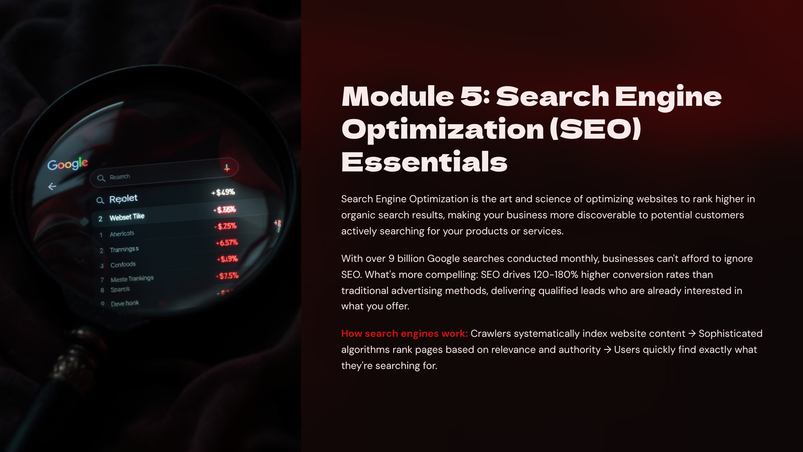 Moreover, SEO has a compounding effect—once your pages rank well, they continue to bring traffic with minimal ongoing cost. However, SEO is not a one-time effort; it’s a long-term strategy involving keyword optimisation, quality content, technical fixes, and ongoing refinement. Entrepreneurs who ignore SEO miss out on high-intent, cost-effective traffic and are forced to rely entirely on ads or referrals. In the digital age, if you’re not ranking, you’re invisible. Understanding SEO ensures your business can be found, trusted, and chosen online.